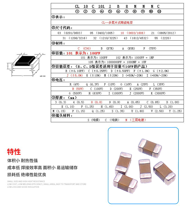 通常所說的陶瓷貼片電容是指MLCC,即多層陶瓷片式電容,常規(guī)貼片電容按材料分為COG(NPO)、X7R、Y5V,其引腳封裝有0201,0402,0603,0805,1206,1210,1812,1825,2225 多層陶瓷電容是由平行的陶瓷材料和電極材料層疊而成。